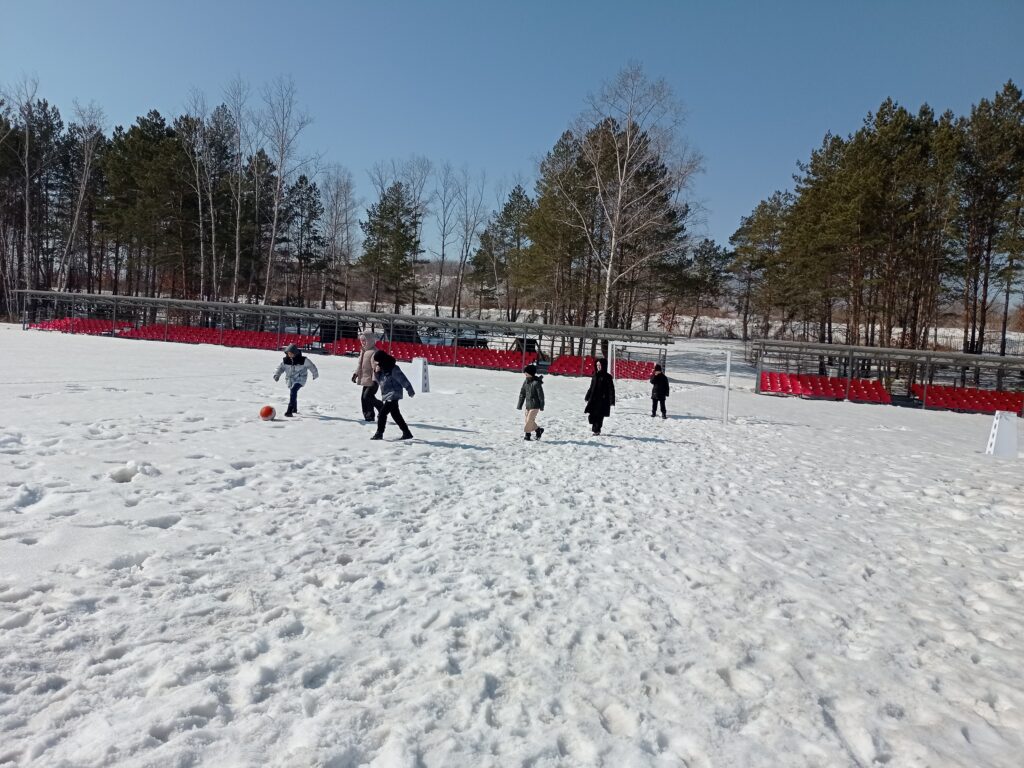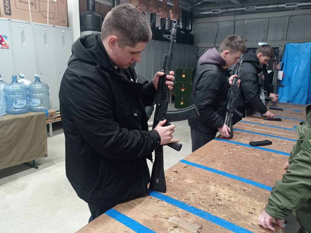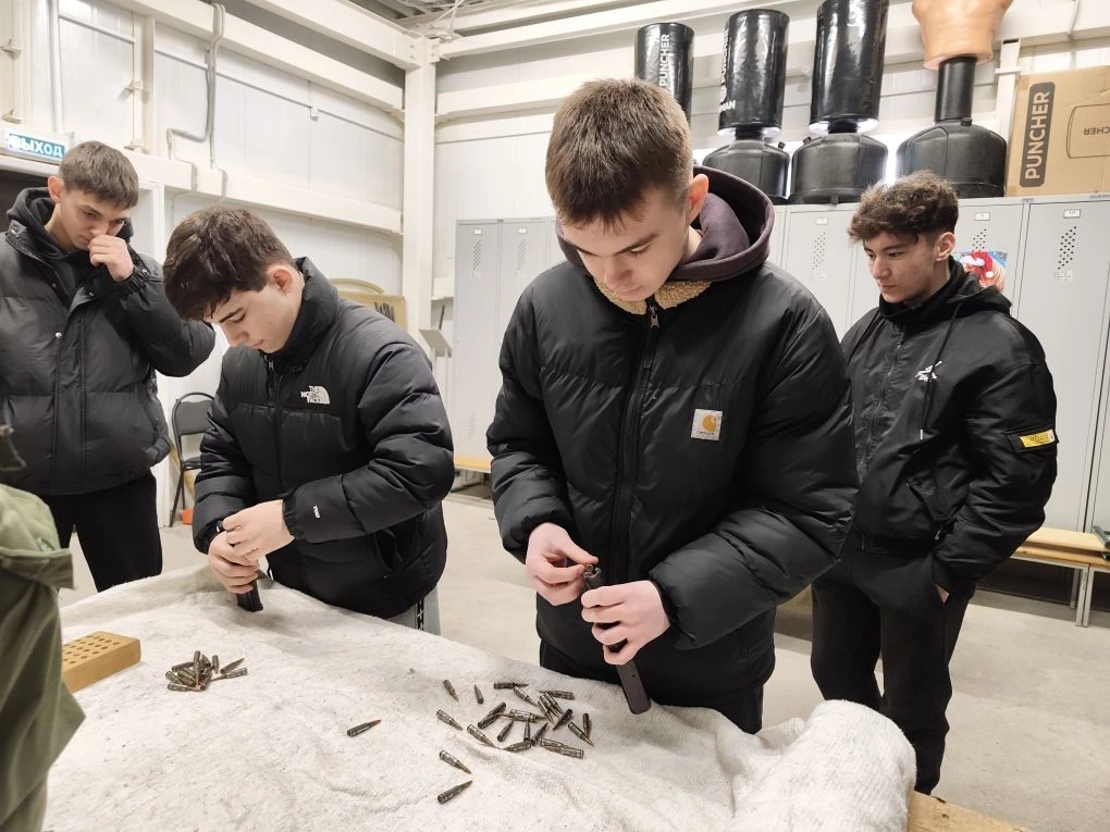 Затем ребят ждали учебные площадки: они отработали сборку-разборку АК-74, стрельбу из пневматических винтовок, учились маскировке и сразились в футбол на снегу.