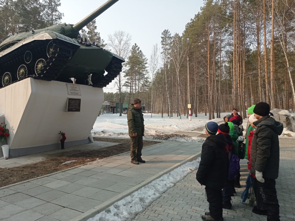 Программа визита началась с экскурсии по территории центра. Школьники познакомились с историей места, узнали о связи центра с легендарным Благовещенским высшим танковым командным училищем и посетили танк ИС-3, установленный на территории «Авангарда».